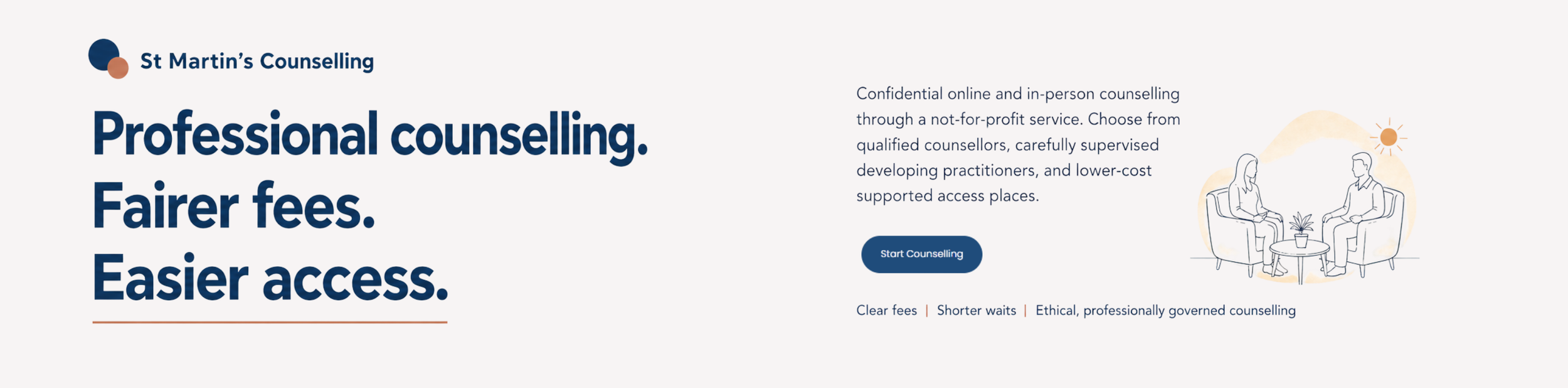 A charity-led, values-driven counselling service that combines professional quality with fairness and access.